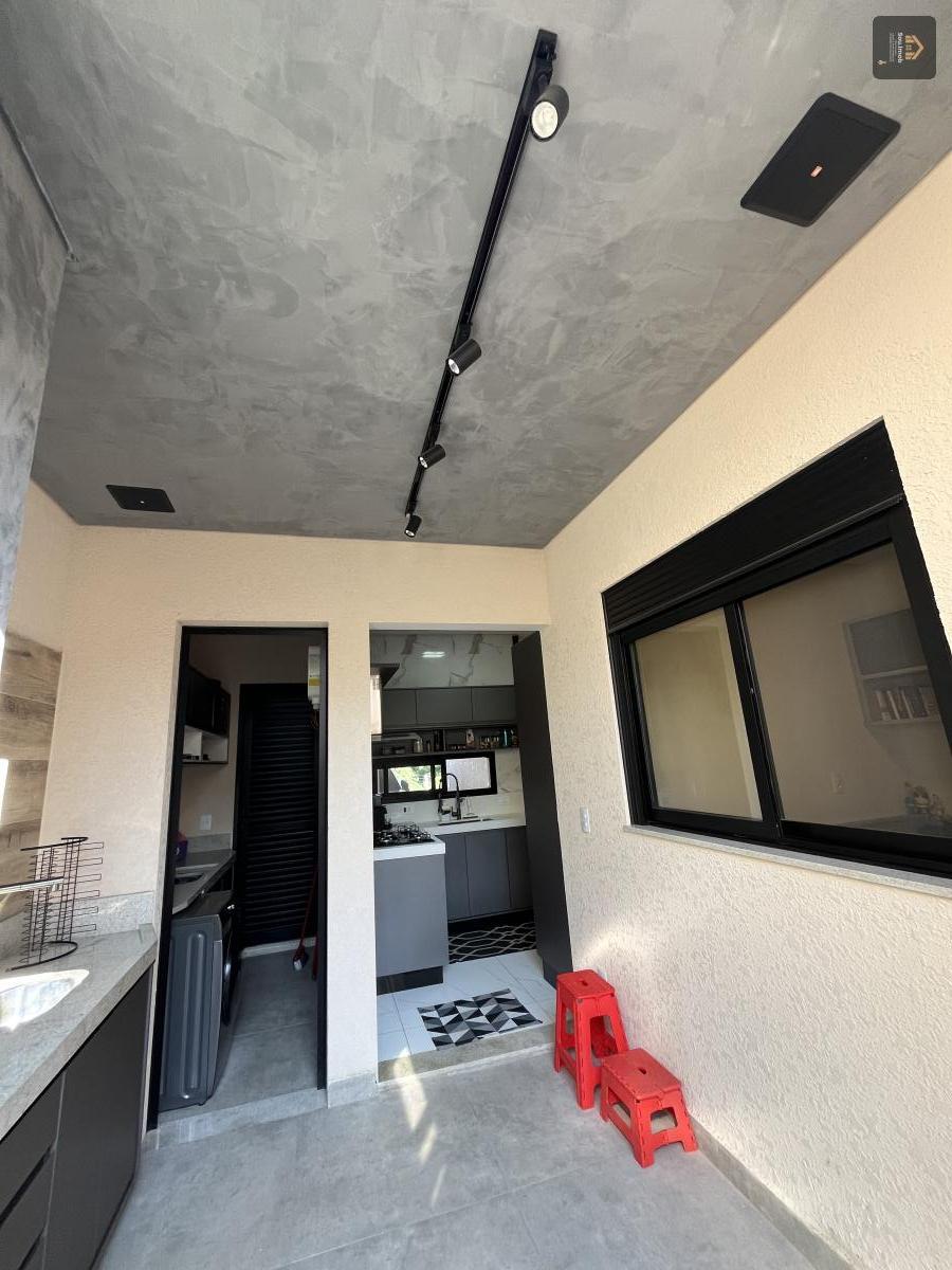 •? ?Area gourmet com churrasqueira e sonorização no teto.