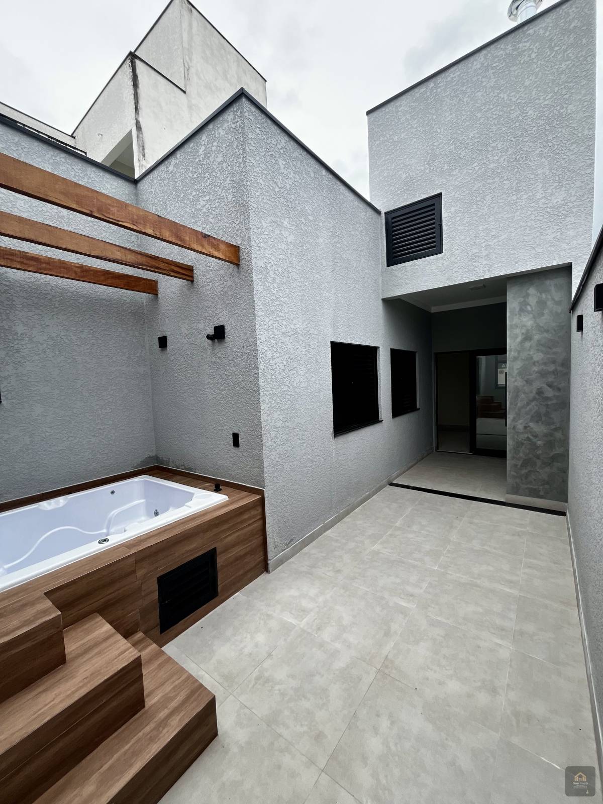 Casa térrea com 3 dormitórios, sendo 1 suíte com closet. Esquadrias de alumínio automatizadas. Portas internas, interruptores, pia, revestimento nos banheiro, louças sanitárias e luminárias, a porta da entrada em preto que contrastam com a arquitetura moderna e as paredes com pintura branca. A casa oferece uma área gourmet separada da cozinha e um ofurô lindamente instalado no quintal.