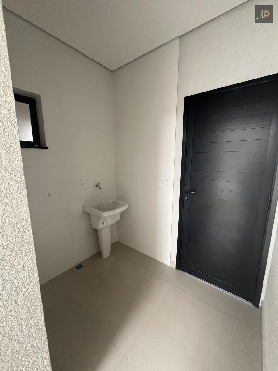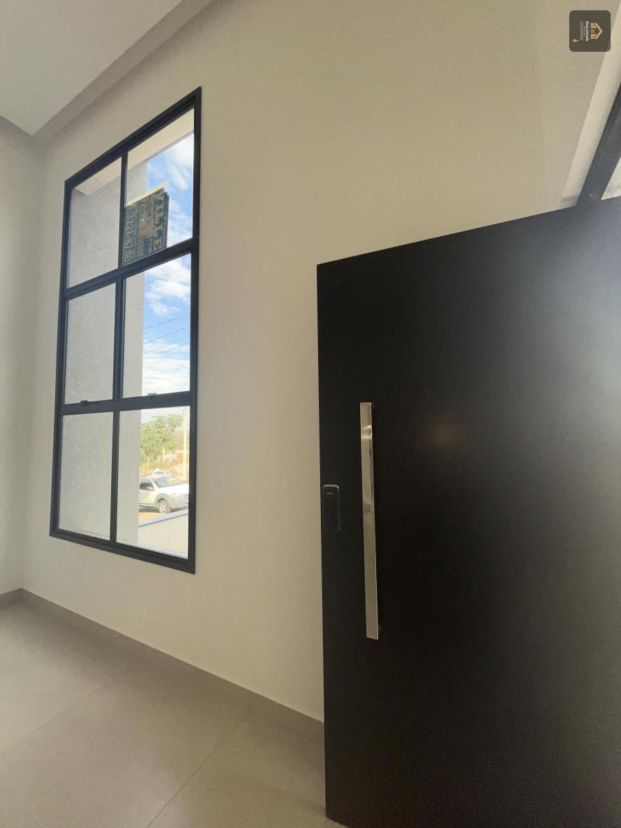 Área gourmet coberta e separada da cozinha. Esquadrias metálicas pretas. Porta com fechadura eletrônica.
