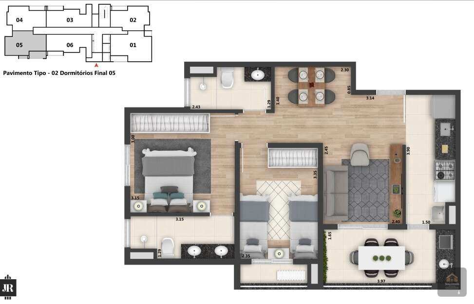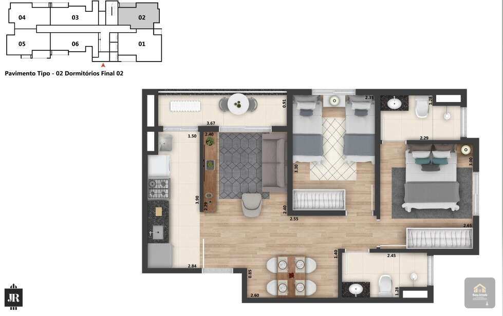 Apartamentos ainda disponíveis com plantas de 51m² a 71m², já passando por vistorias para serem entregues.